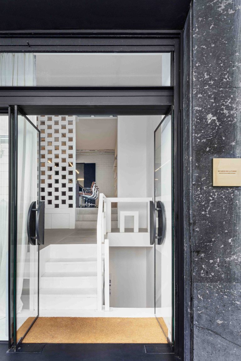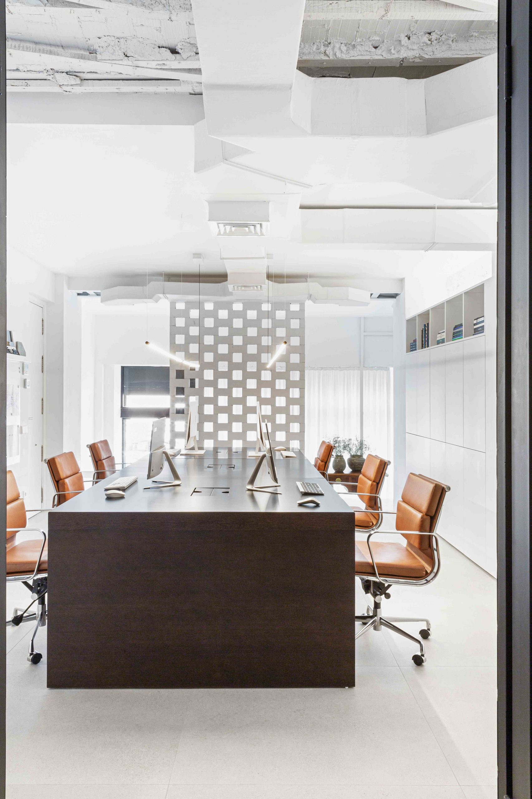 The Ricardo de la Torre Studio is presented as a workspace designed to favour clarity, functionality and natural flow between the different areas. The organisation is structured around a central core of open work desks, where natural light and the predominant use of white enhance a clean and orderly atmosphere. The warm textures of the wood and the exposed structural elements add balance and character to the whole, creating an environment that facilitates concentration and collaborative work.