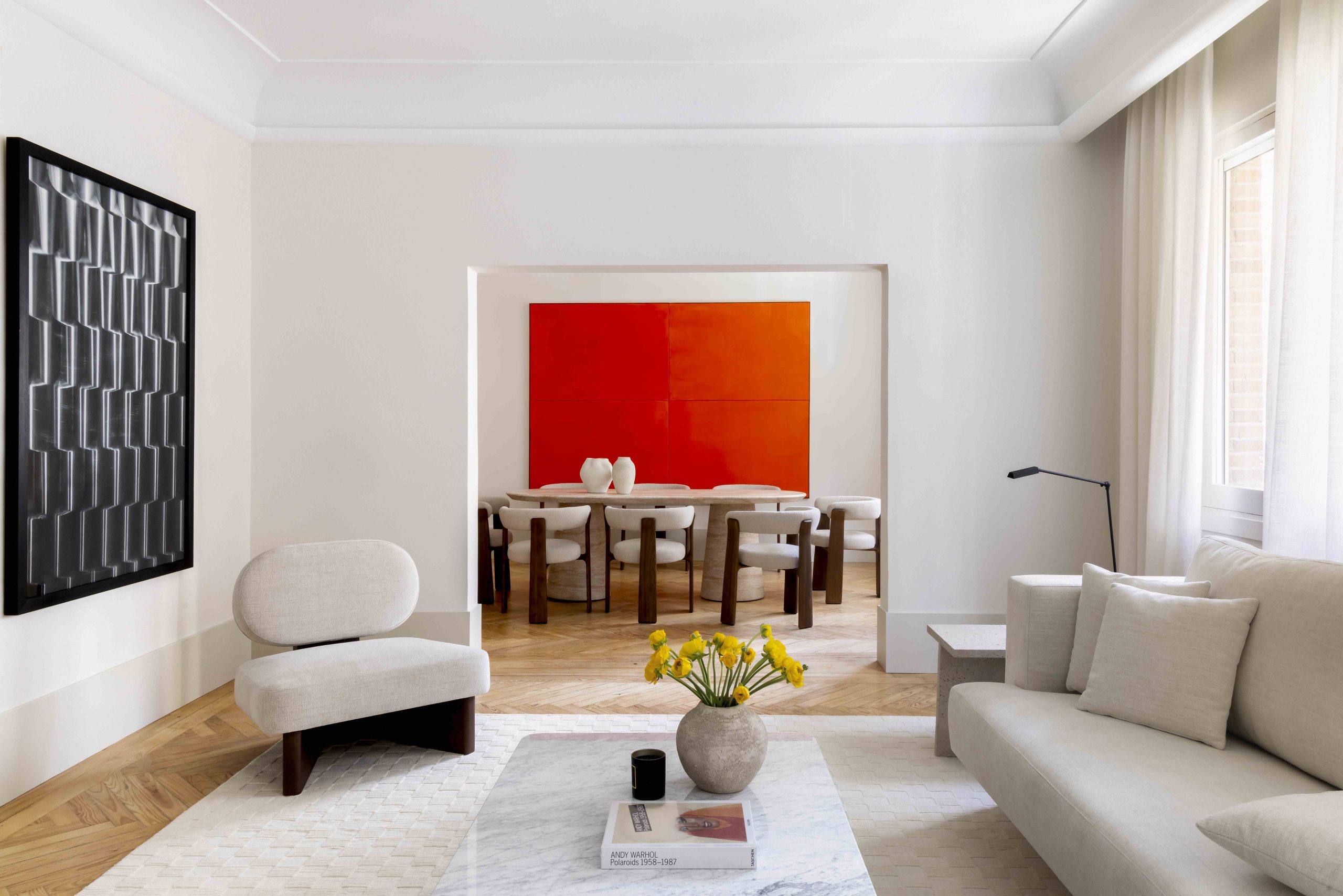 Los elementos decorativos, textiles y piezas seleccionadas completan la identidad del proyecto, sin excesos, pero con la intención de crear un ambiente acogedor y bien estructurado. La renovación incluye también mejoras en iluminación, aislamiento y sistemas técnicos, garantizando un hogar más confortable y preparado para el futuro. El resultado es una vivienda contemporánea, luminosa y funcional, donde cada decisión de diseño refleja la manera de trabajar de Ricardo de la Torre: precisión, coherencia estética y cuidado en la ejecución desde el primer plano hasta el último detalle.