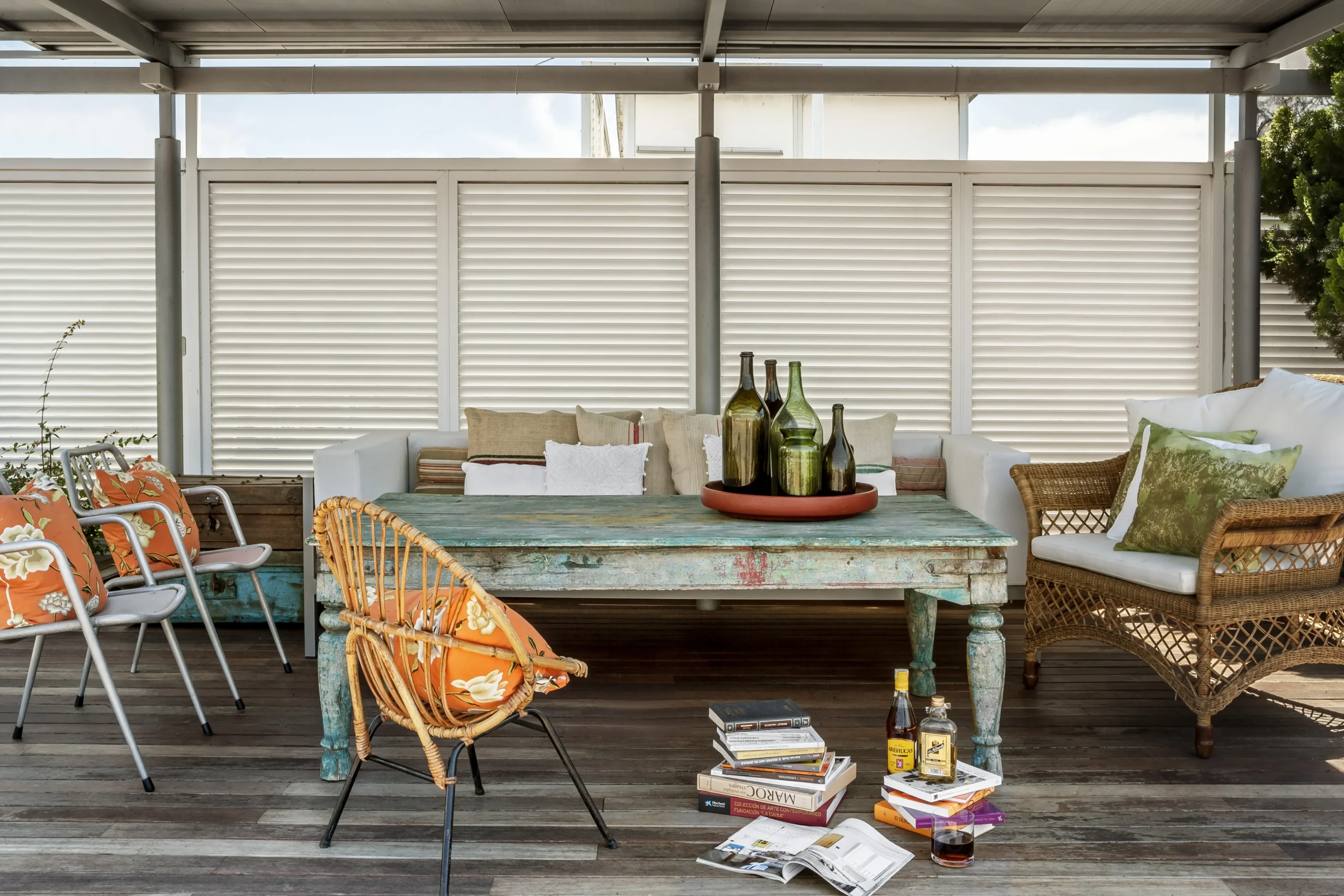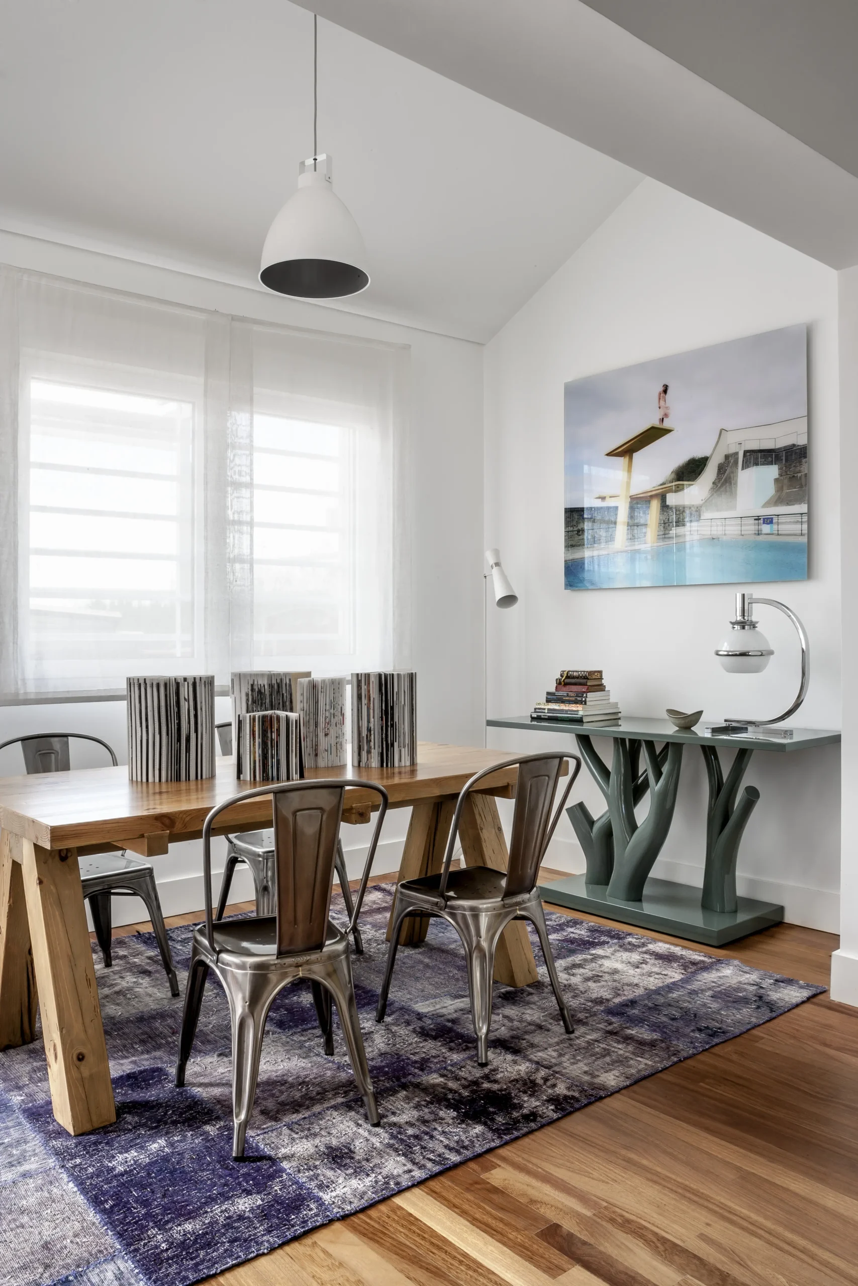 La particular configuración, con techos altísimos, permitió crear dos plantas. La propietaria quería tener una biblioteca como eje del conjunto, por eso el interiorista la colocó en la entrada, entre el salón y el comedor. Allí también se instalaron dos habitaciones y un aseo de invitados. Arriba está el dormitorio principal, con su vestidor y baño, y el despacho, que se asoma al salón. En esta zona, la altura del techo es de casi seis metros, lo que le confiere un aire de galería de arte. También ayuda el blanco inmaculado de las paredes, donde se pavonean las esculturas, fotografías y cuadros de la editora, que es una apasionada coleccionista de arte contemporáneo. La terraza más grande –hay dos, otra junto al salón que se usa como cuarto de estar o para echarse la siesta– se vive todo el año, porque tiene piscina, zona de sofás y comedor. Ricardo de la Torre superó con creces el reto lanzado al conseguir el auténtico lujo que supone reunir la belleza, el confort y la comodidad sin pretensiones.