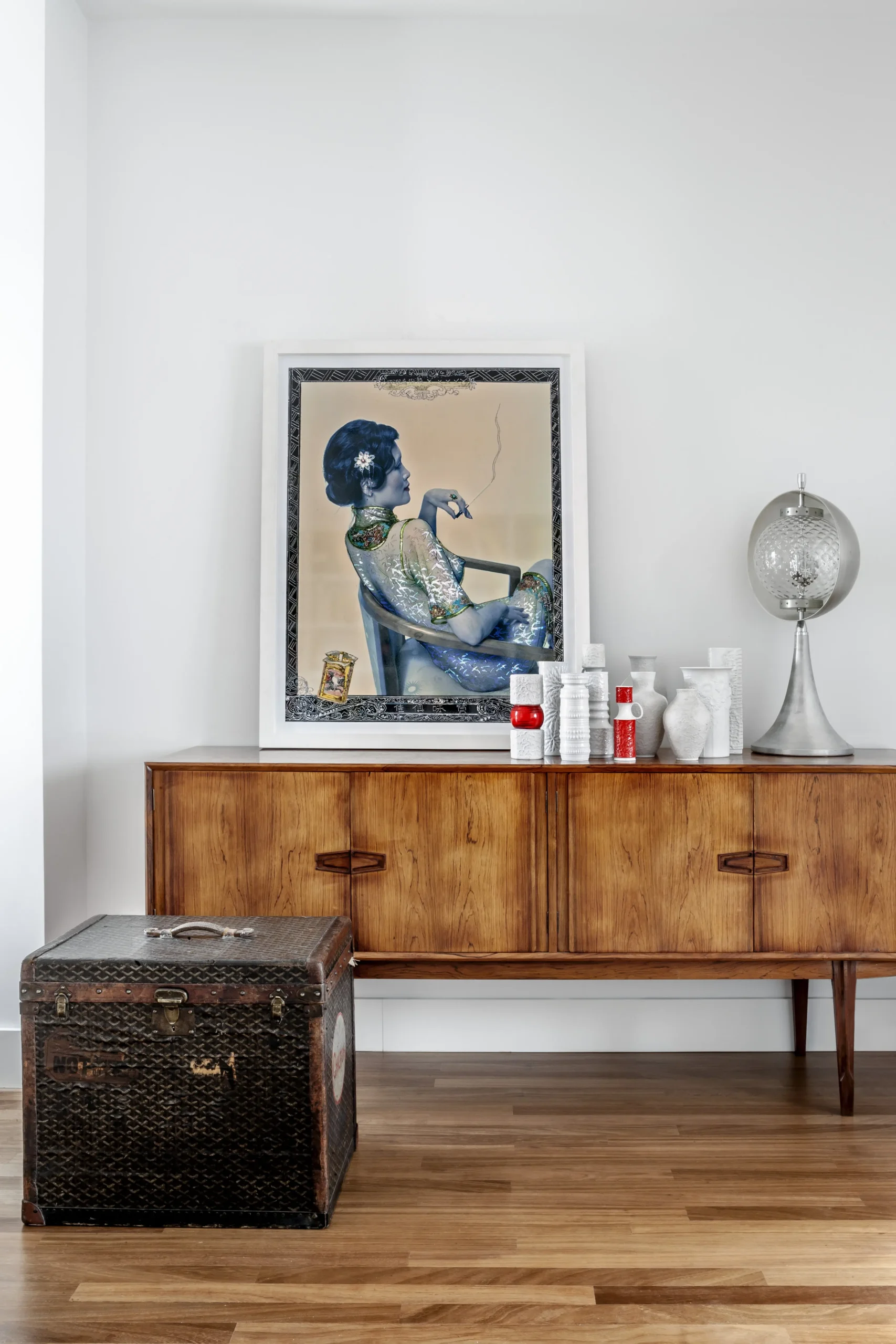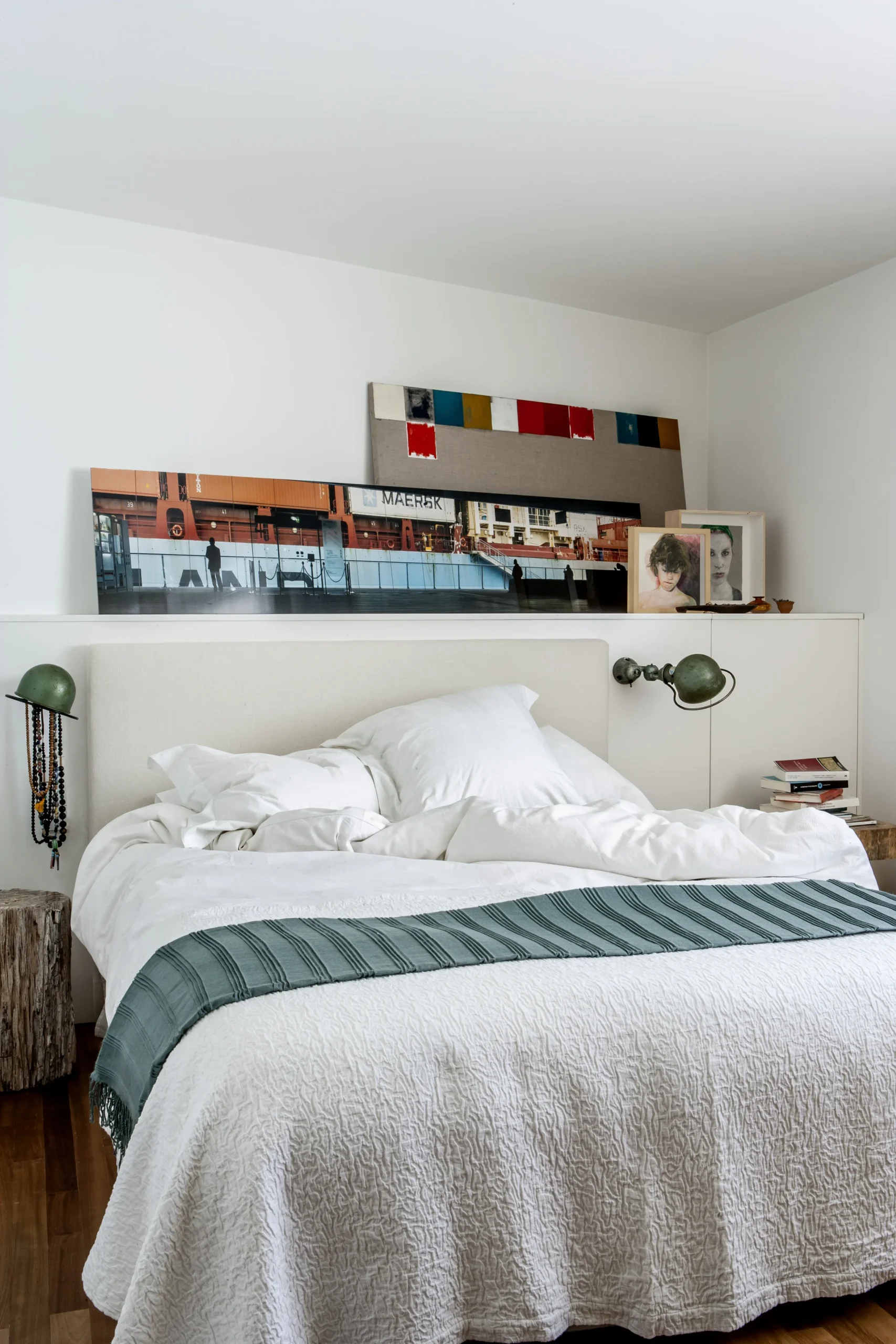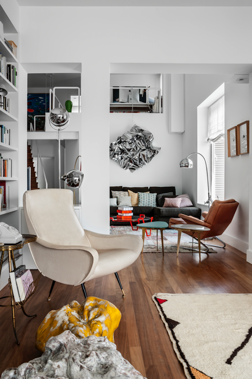 El decorador Ricardo de la Torre ha convertido este piso al lado de la Gran Vía en un dúplex cálido donde los libros y el arte de la dueña, una editora digital, son el hilo argumental. Aprovechando sus hechuras casi industriales y sus acabados fríos y lineales para conseguir una apariencia y sabor relajado en apenas cuatro meses de trabajo. El piso tiene muchísimo carácter y un pasado peculiar. El edificio fue construido en los años 50 y tres décadas más tarde, los propietarios decidieron vender a un arquitecto la antigua vivienda del portero, que estaba en el ático, con unas terrazas y unas vistas impresionantes.