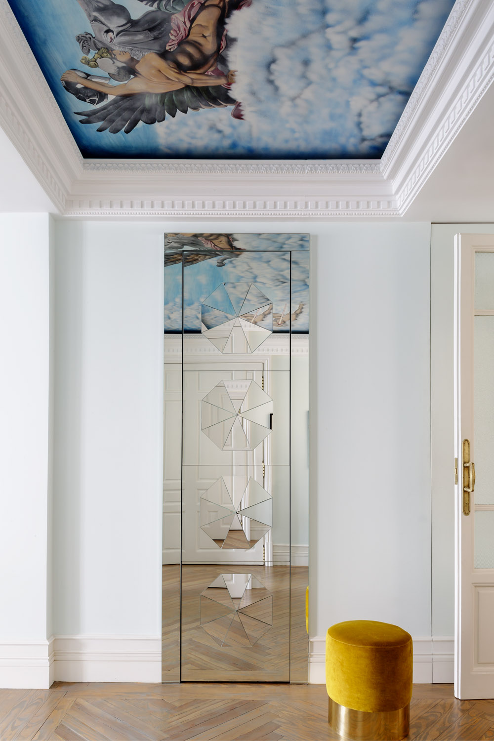 Donde ha puesto más de sí mismo ha sido en el hall, mezclando referencias a las esculturas de Anish Kapoor en la puerta de espejo del baño, diseñado como si fuera una nave espacial, con otras a Star Wars en el fresco del techo, en el que personajes de la franquicia galáctica como Chewbacca o Darth Vader se cuelan en una escena inspirada en Miguel Ángel.